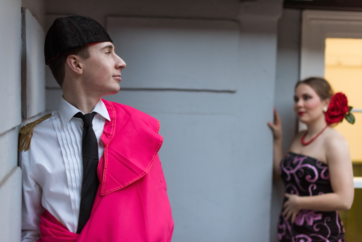 Recently, we took a break from our intense rehearsal schedule for a photoshoot. Our costumes designer, Lorena Paton Romero, grew up in Spain and her costumes are absolutely perfect for our production is set in the 1980s, just post Franco. I have certainly never felt more Spanish or more Carmen than in this gorgeous dress. I usually hate photos, so huge thanks to Johannes Hjorth for making the process so much fun and for producing such wonderful images. The cast and crew are extremely excited for show week now!